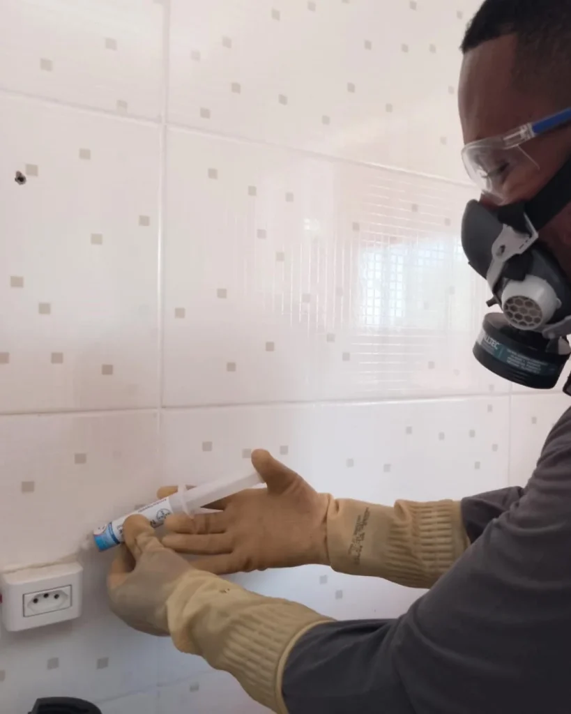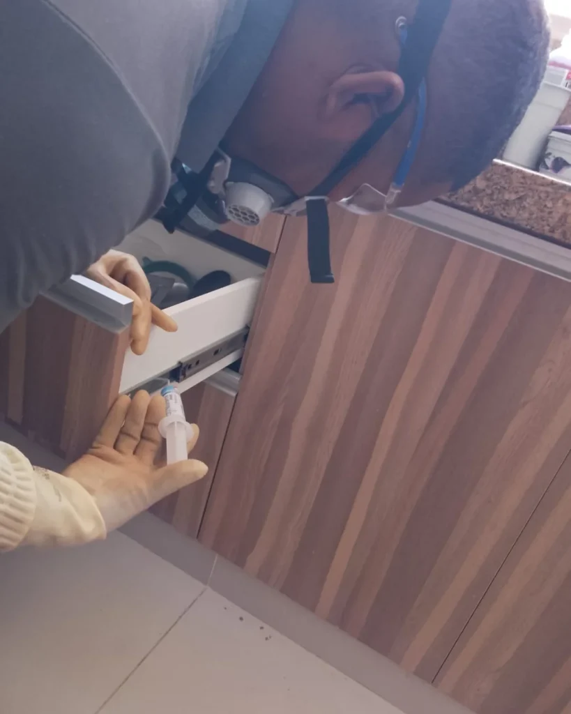 Aplicado em locais estratégicos, como frestas e cantos, onde as baratas circulam. Essa técnica é discreta, sem cheiro, e segura para pessoas e animais.